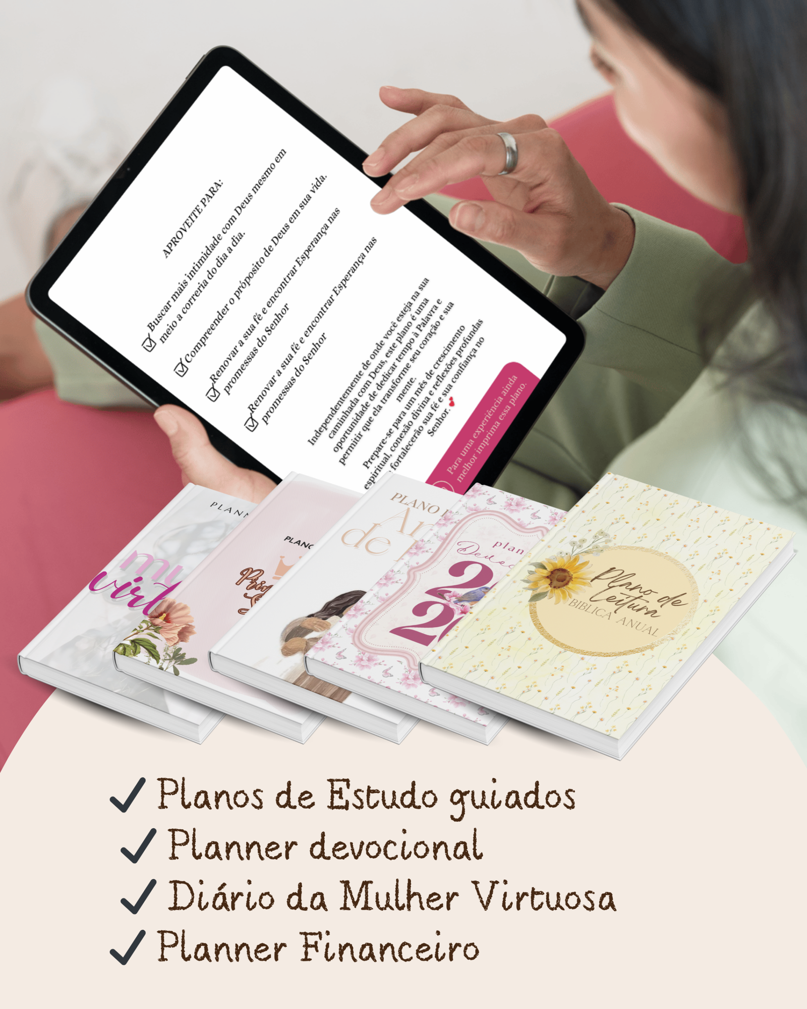 Ferramentas que fortalecem sua vida espiritual enquanto você constrói sua presença digital. Materiais para oração, organização e constância espiritual. Esses planos existem para alinhar sua mente e sustentar seu posicionamento com base na Palavra — porque propósito sem raiz não se sustenta. ✨não existe posicionamento cristão sem intimidade com Deus.